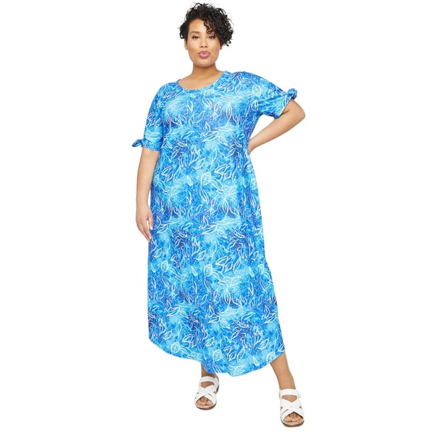 Catherines Catherines Women S Plus Size Dewey Beach Maxi Dress 4x Blue Leaf Print 3762 Walmart Com Walmart Com